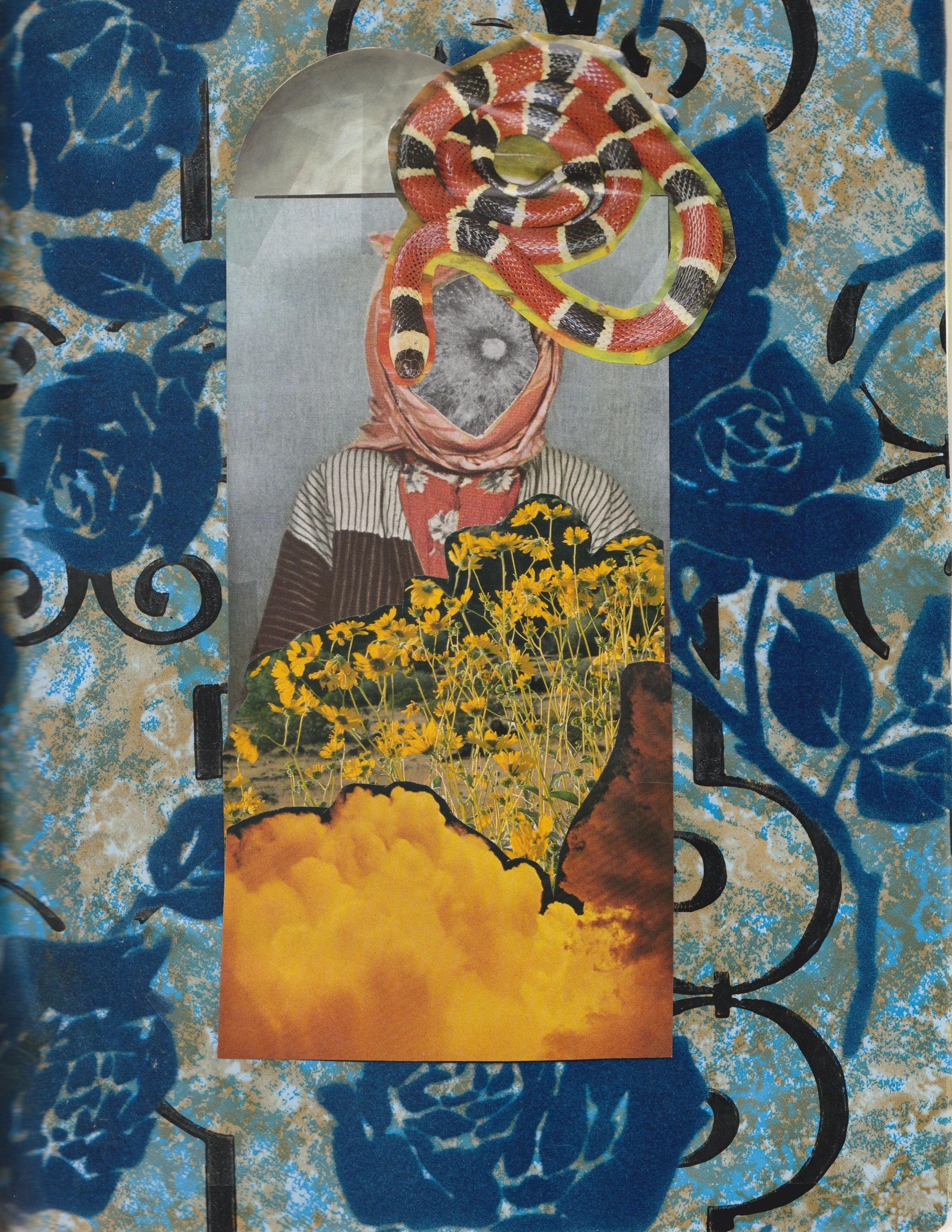some journal collages February 20, 2026 in collage, paper analog collages from my notebook. made at the monthly collage club at corner 62 in twentynine palms.